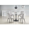 wymiary: o90/72 cm, materiał: szkło / stal malowana proszkowo, kolor: blat - biały marmur, nogi - czarny