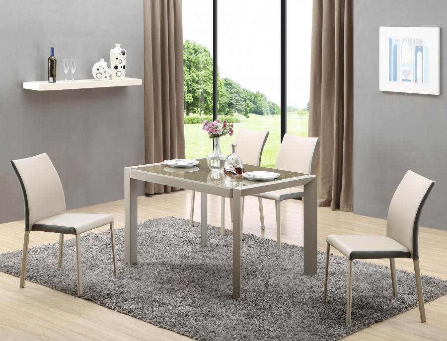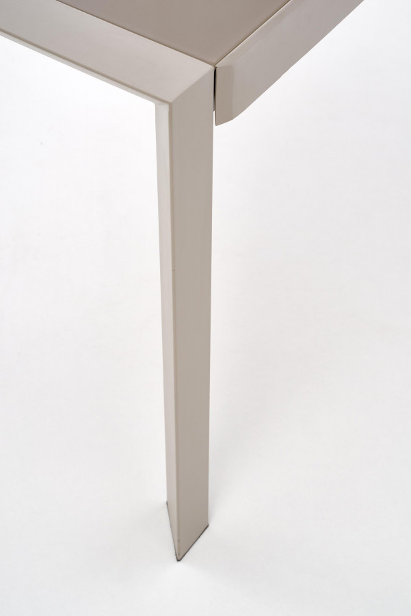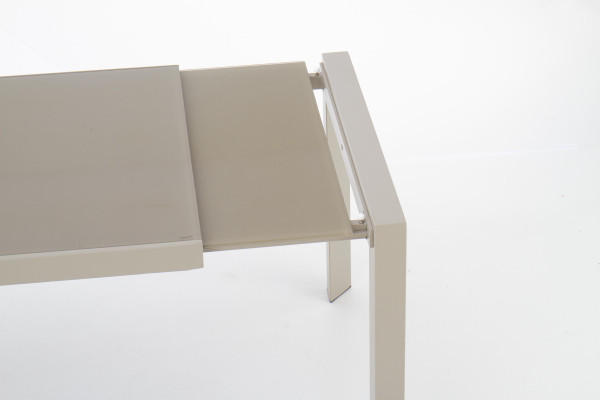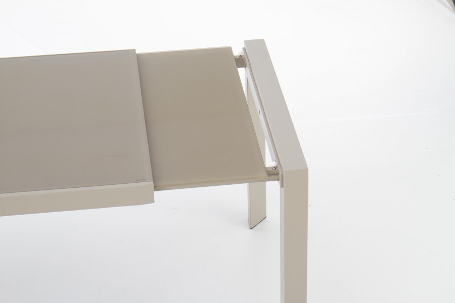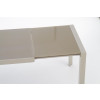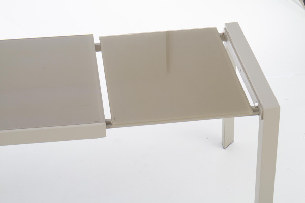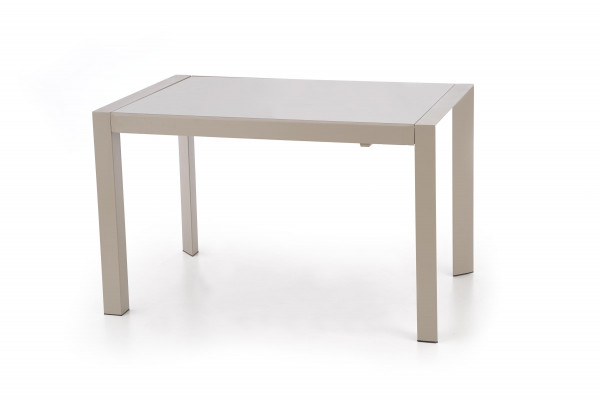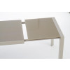 stół rozkładany, wymiary: 122÷182/82/76 cm, materiał: szkło / stal malowana proszkowo, kolor: szkło - jasny brąz, stelaż - beżowy