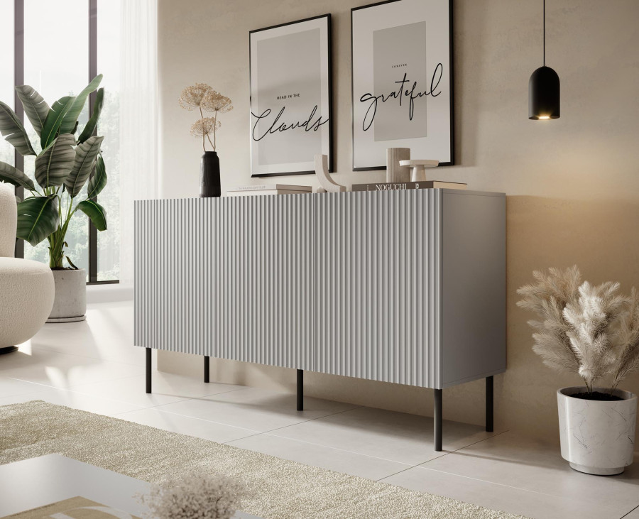 komoda, wymiary: 150/42/81 cm, materiał: płyta meblowa laminowana / MDF laminowany / nóżki - metal, kolor: jasny popiel - czarny