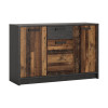 Komoda w odcieniach drewna w połączeniu z elementami w barwie matera ciemna tworzy piękny kontrast. Idealnie będzie się prezentować w Twojej jadalni lub w pokoju Twojego dziecka. Blat stanowi bardzo eleganckie miejsce, na Twoje dekoracje, pamiątki, które w wyjątkowy sposób przyozdobią Twój dom, a utrzymanie go w czystości nie sprawi Ci żadnego problemu.
