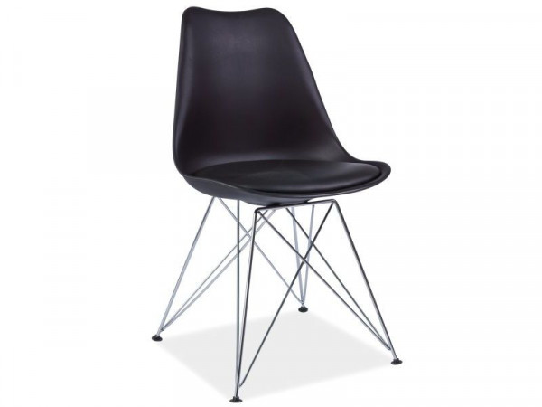 Krzesło, siedzisko tworzywo PP+ekoskóra, kolor: czarny / stelaż metal chrom