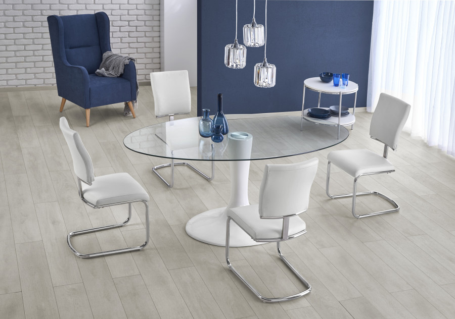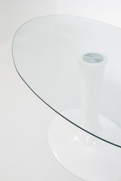 CORAL stół biały, blat - bezbarwny