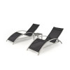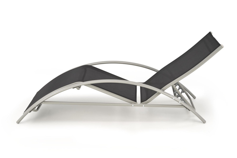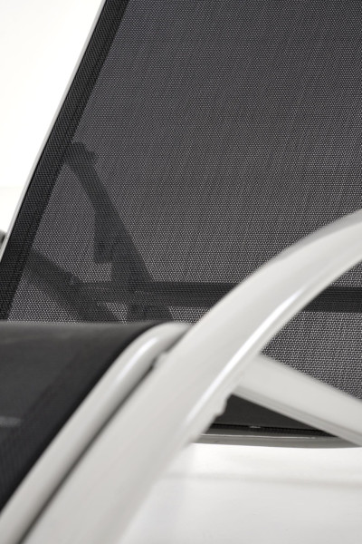 zestaw 2 leżaków ze stolikiem, wymiary: 160/60/66-92 cm - leżak, 30/30/30 cm - stolik, materiał: siatka / stal malowana proszkowo, kolor: czarny / jasny popiel