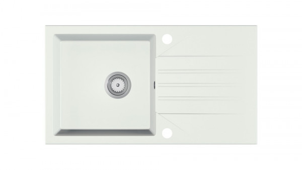zlewozmywak granitowy, głębokość komory: 18 cm, montaż: szafka od szerokości 45 cm, syfon automatyczny 3 1/2" z możliwością podpięcia zmywarki młynka do odpadów, fabrycznie 2 otwory, kolor: biały