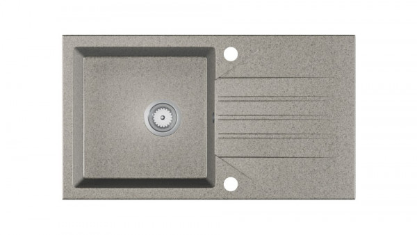 zlewozmywak granitowy, głębokość komory: 18 cm, montaż: szafka od szerokości 45 cm, syfon automatyczny 3 1/2" z możliwością podpięcia zmywarki młynka do odpadów, fabrycznie 2 otwory, kolor: szary nakrapiany