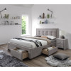 wymiary: 164/215/111 cm, łóżko z szufladami, materiał: tkanina / drewno lite, kolor: tkanina - beige, drewno - orzech