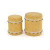 wymiary: fi38/44 oraz fi30/37 cm, zestaw 2 puf z funkcją pojemnika, materiał: tkanina, kolory: żółty