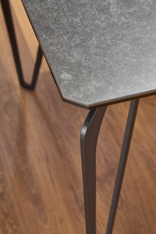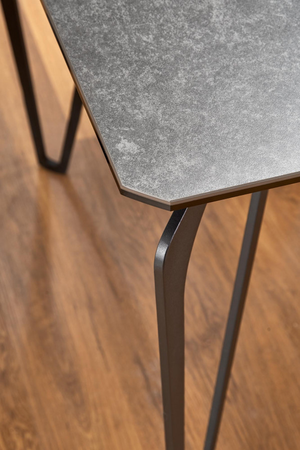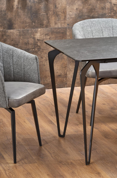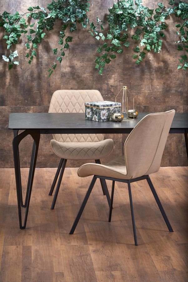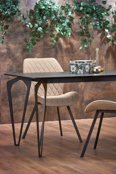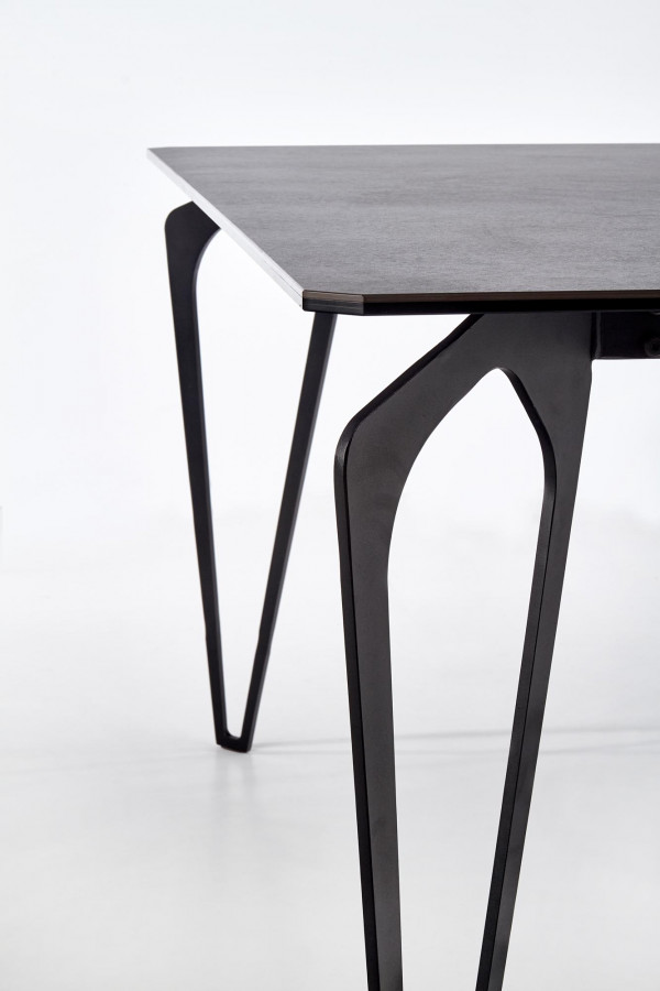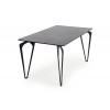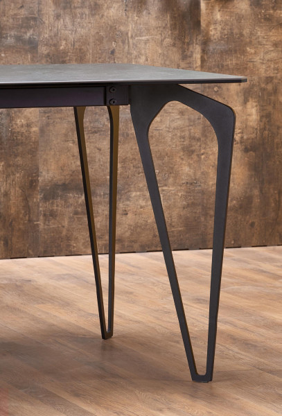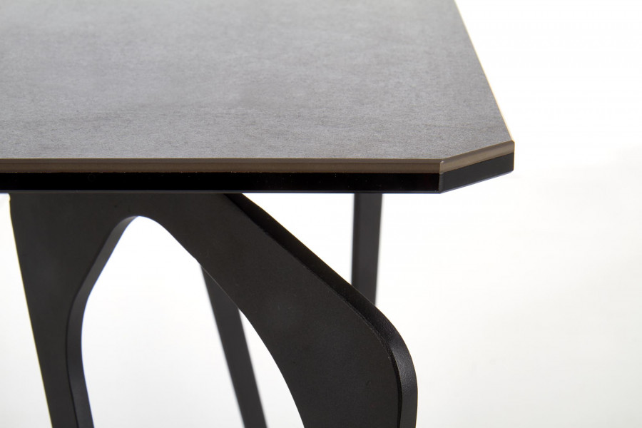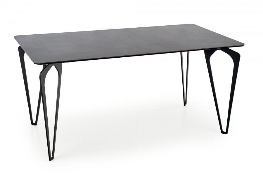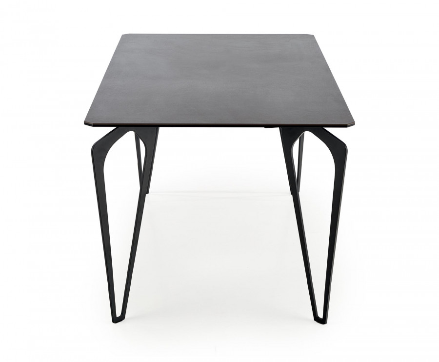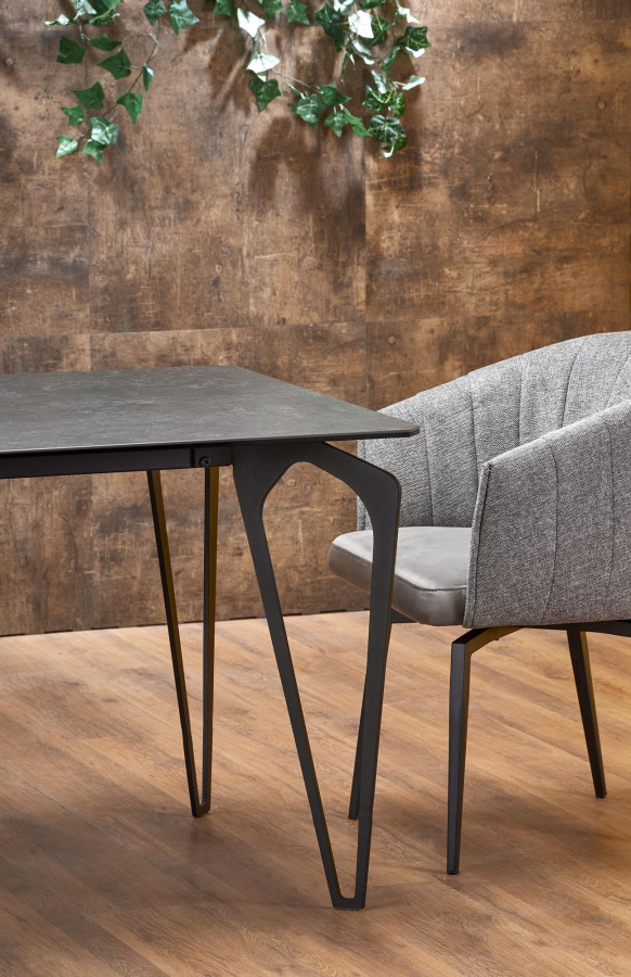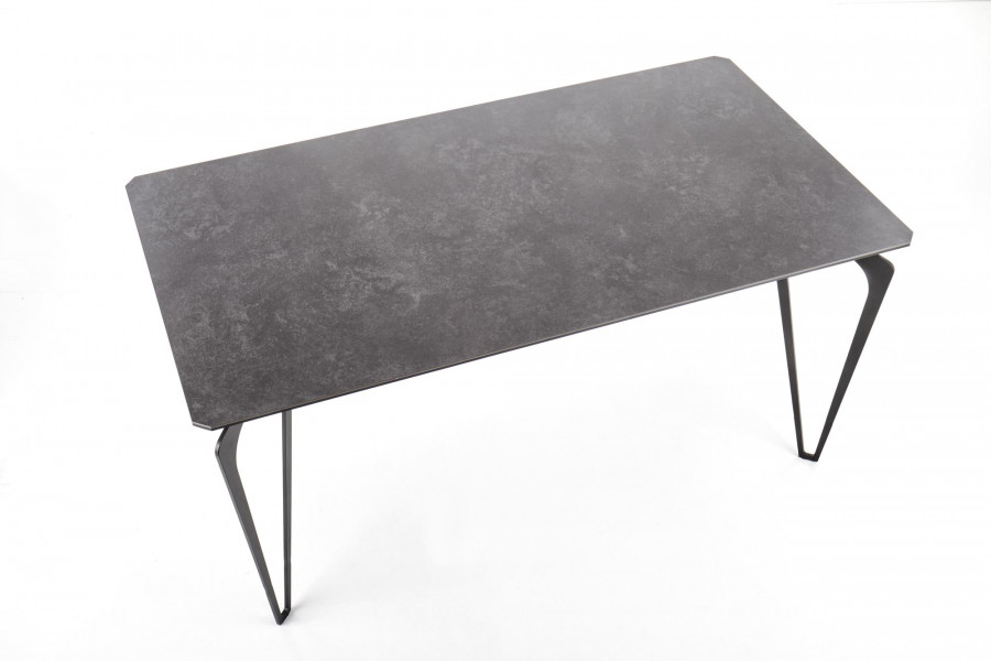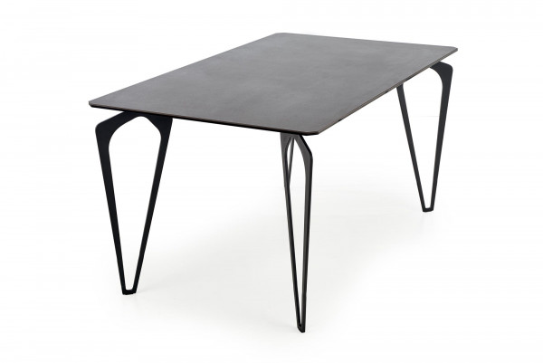 wymiary: 160/88/75 cm, materiał: szkło + ceramika / stal malowana proszkowo, kolor: blat - ciemny popiel, nogi - czarny