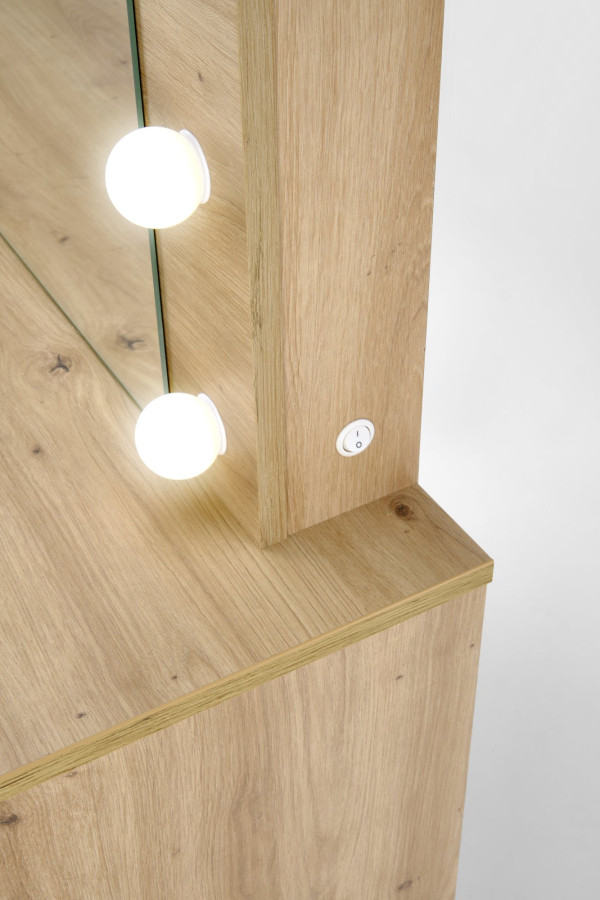 toaletka, wymiary: 94/43/140 cm, materiał: płyta meblowa okleinowana, oświetlenie LED, kolor: dąb artisan