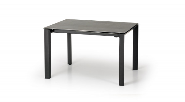 stół rozkładany, wymiary: 120-180/85/76 cm, materiał: blat ceramiczny / stal malowana proszkowo, kolor: blat - humo, nogi - czarne