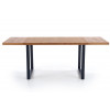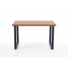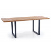 stół rozkładany, wymiary: 126÷206/80/76 cm, materiał: blat - płyta fornirowana, na obrzeżach drewno lite, nogi - stal malowana proszkowo, kolor: blat – jasny dąb, nogi - czarne