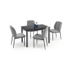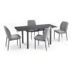 zestaw JASPER stół + 4 krzesła, wymiary: stół 110-170/70/76 cm, krzesło 44/58/89/47 cm, materiał: szkło / stal malowana proszkowo, kolor: czarny - popielaty
