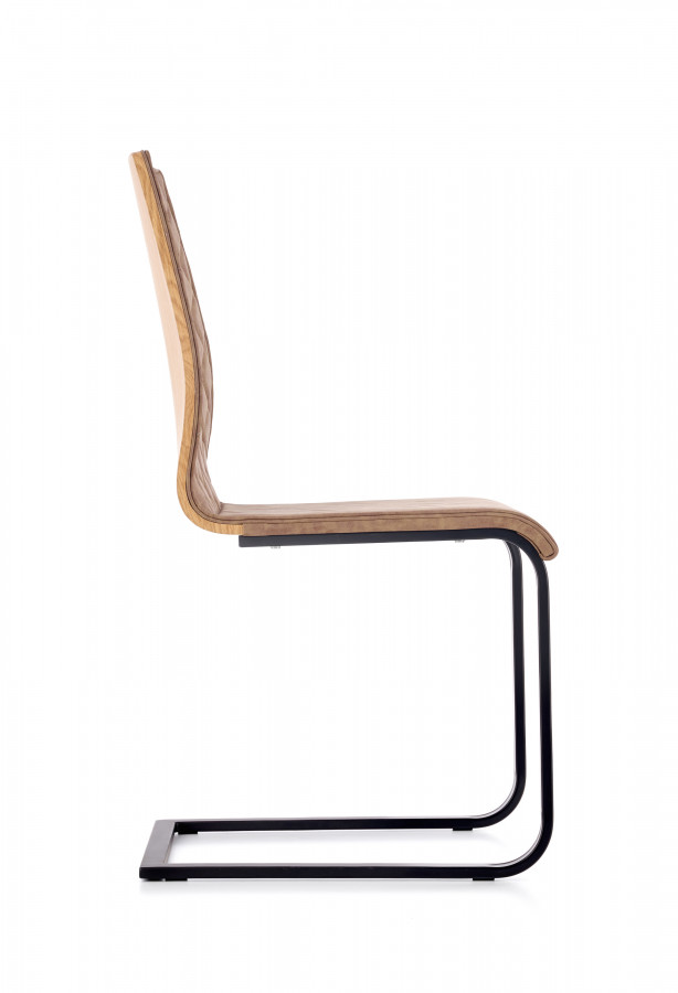 wymiary: 43/58/94/46 cm, materiał: eco skóra / sklejka laminowana / stal malowana proszkowo, kolor: brązowy - dąb złoty