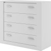 Pojemna komoda z czterema szufladami na bieliznę. Mebel wykonano z wytrzymałej płyty laminowanej wykończonej trwałym obrzeżem ABS.