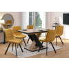 Tapicerka krzesła została wykonana z gładkiego i miękkiego materiału w kolorze curry. Wygodne siedzisko zapewnia optymalne i stabilne wsparcie dla użytkownika. Precyzyjne szwy i wykończenie dodają klasy i elegancji, tworząc harmonijną całość z zewnętrznym designem krzesła. Czarny stelaż krzesła tworzy kontrast w stosunku do intensywnego koloru tapicerki. Ten efekt dodaje krzesłu charakteru i wyrazu, tworząc wyjątkową kompozycję.
