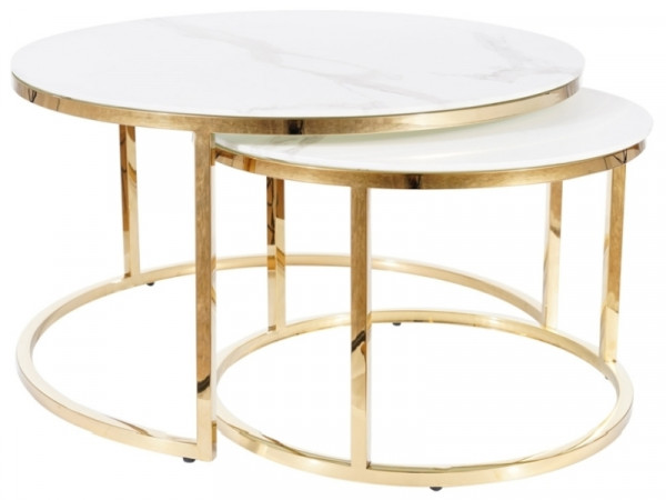 set, top: tempered glass, frame: stainless steel, color: white, marble effect / golden