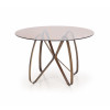 wymiary: O120/76 cm, materiał: szklo / stal malowana, kolor: blat - brązowy, nogi - antyczny złoty