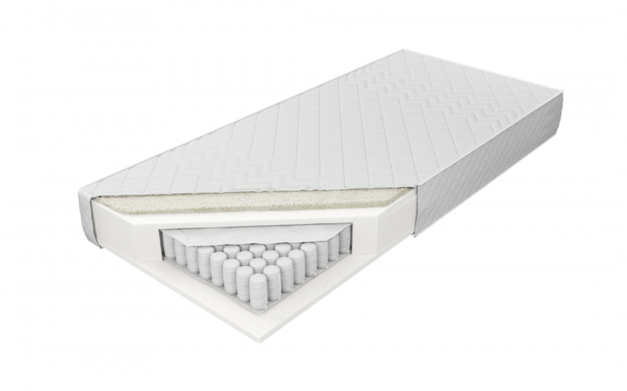 Materac Samos został wykonany ze sprężyn Pocket 7P z wysokogatunkowego drutu, które zostały umieszczone w pojedynczych kieszonkach o średnicy 5,8 mm zwiększających elastyczność oraz punktowe podparcie dla Twojego kręgosłupa. Siedem stref twardości utrzymuje poszczególne części ciała (głowa, kręgosłup piersiowy, miednica, uda, łydki, stopy, lędźwie) w położeniu dostosowanym do budowy anatomicznej. W 1 m.kw. materaca mieści się ok. 255 sprężyn.