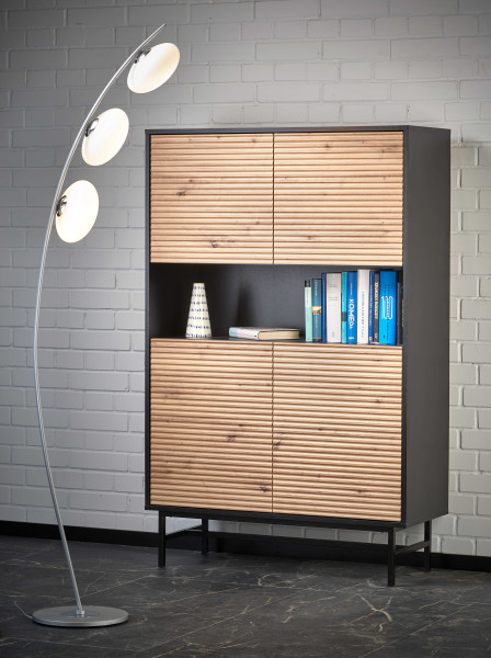 komoda, wymiary: 100/40/156 cm, materiał: MDF okleinowany / płyta meblowa okleinowana / stal malowana proszkowo, kolor: dąb artisan - czarny