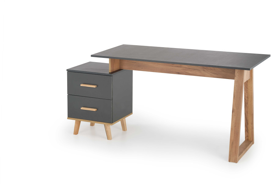 wymiary: 134-165-60/78 cm, biurko z moźliwością regulacji szerokości, materiał: płyta meblowa okleinowana / MDF okleinowany / drewno lite, kolor: antracyt mat - dąb wotan