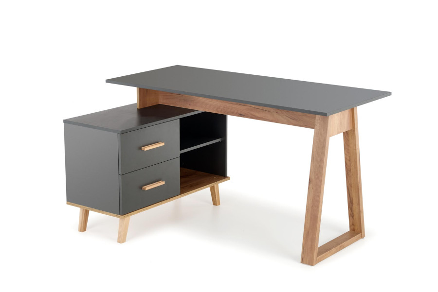 wymiary: 134-210/60-90/78 cm, biurko proste albo narożne, materiał: płyta meblowa okleinowana / MDF okleinowany / drewno lite, kolor: antracyt mat - dąb wotan