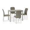 Klasyczny stół DAMAR, idealnie odnajdzie się we wnętrzu urządzonym w nowoczesnym stylu. Charakterystyczne, geometryczne wzory na blacie, sprawiają, iż mebel staje się nietuzinkowy. Blat ze szkła hartowanego o szerokości 80 cm, pozwoli na komfortowe spożywanie posiłków z rodziną. Wybarwieniu mebla o modnym, szarym odcieniu, sprawi, iż Twoje wnętrze zyska oryginalnego i wyjątkowego charakteru.