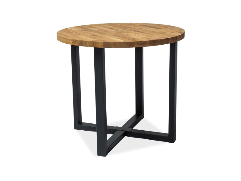 Stół,blat: lite drewno dębowe, stelaż: metal, kolor: dąb naturalny / czarny