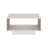 Półka pod blatem podkreśla funkcjonalność stolika, a krawędzie korpusu, które zostały oklejone obrzeżem ABS zapewnia odporność na uszkodzenia mechaniczne.