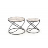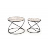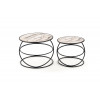 zestaw 2 ław, wymiary: fi 40/35 cm oraz fi 50/39 cm, materiał: MDF okleinowany / stal malowana proszkowo, kolor: biały marmur - czarny