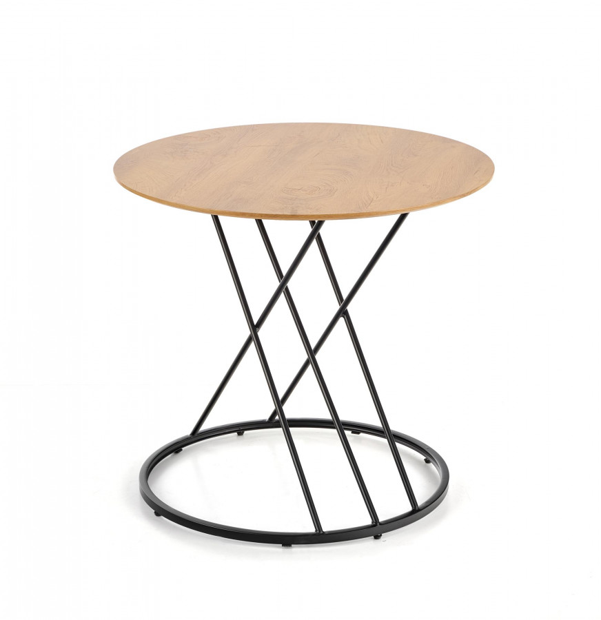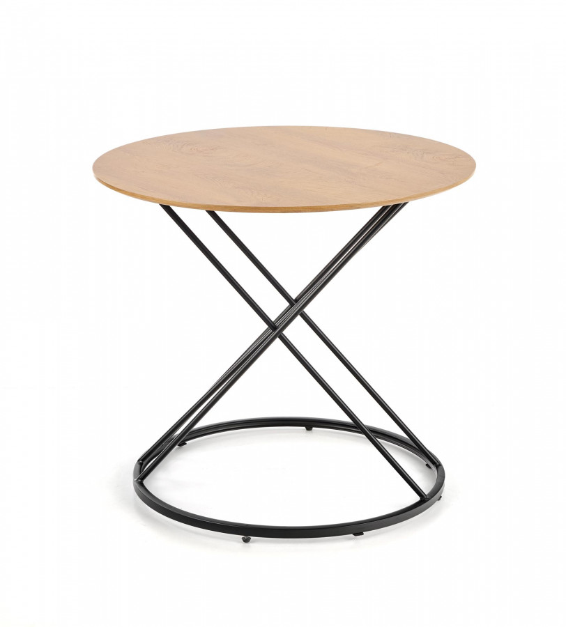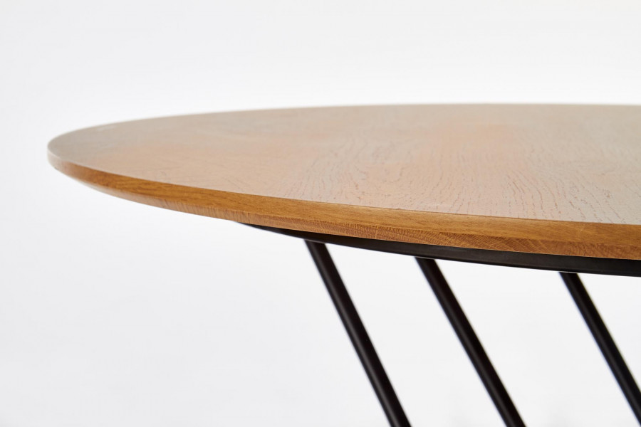 wymiary: o80/72 cm, materiał: MDF okleinowany / stal malowana proszkowo, kolor: blat - dąb naturalny, nogi - czarny