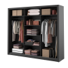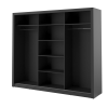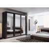 Szafa z trojgiem drzwi przesuwnych z dużymi lustrami na każdym z frontów drzwi optycznie powiększającymi wnętrze. Szafa jest wyposażona w dwa drążki na wieszaki i regał z półkami na ubrania. Na obszernej, górnej półce zmieścimy rzadziej używane rzeczy lub walizki. Mebel wykonano z wytrzymałej płyty laminowanej wykończonej trwałym obrzeżem ABS.