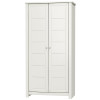 Szafa LS-2 składa się z części dwudrzwiowej, wewnątrz której znajdują się półki bieliźniarki oraz drążek.Korpus mebla wykonany z płyty laminowanej, fronty zaś z płyty MDF oklejonej folią PVC. Fronty posiadają metalowe uchwyty w kolorze chrom z białym wypełnieniem.