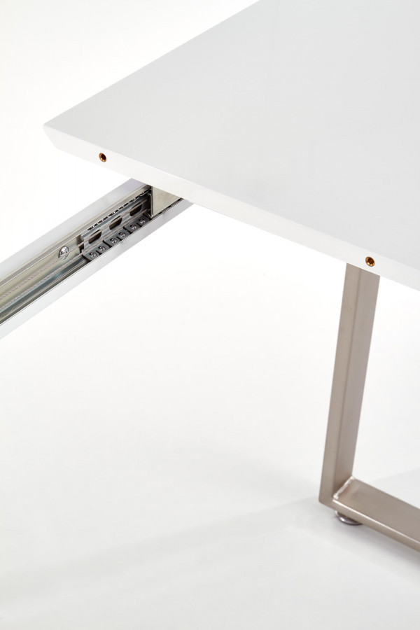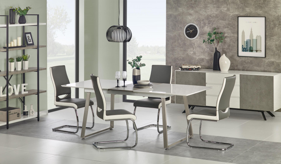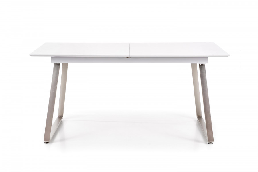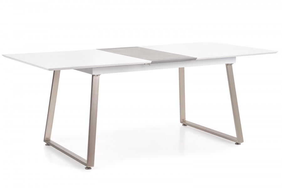 stół rozkładany, wymiary: 160-200/90/75 cm, materiał: MDF lakierowany / MDF laminowany / stal chromowana szczotkowana, kolor: biały / beton