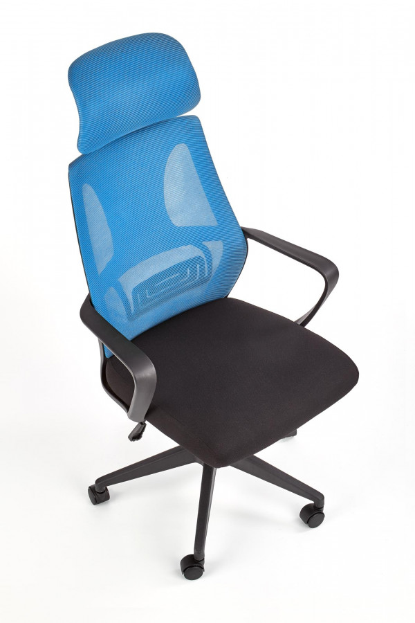 wymiary: 64/60/116-122/46-52 cm, mechanizm TILT / regulowany zagłówek, tkanina membranowa / siatka, kolor: czarny - niebieski
