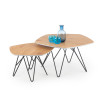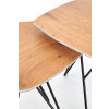 wymiary: duża - 75/75/41 cm, mała - 56/56/36 cm, zestaw 2 ław materiał: MDF laminowany / MDF lakierowany / stal malowana proszkowo, kolor: dąb złoty - biały - czarny